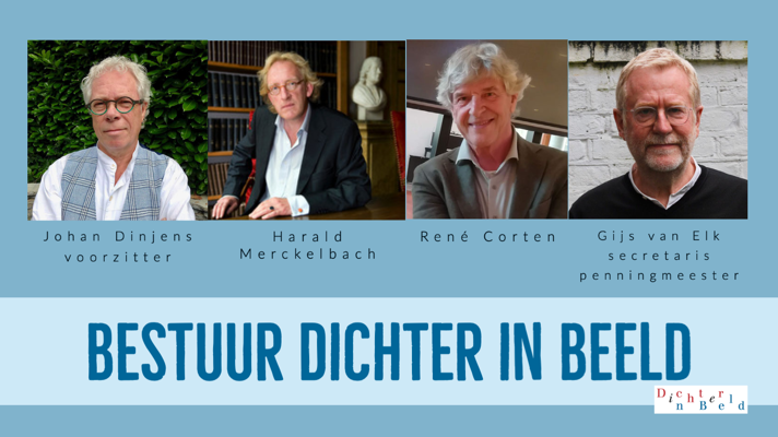 Momenteel maken deel van het bestuur uit: Johan Dinjens (voorzitter), Gijs van Elk (secretaris/penningmeester), René Corten en Harald Merckelbach. Geen bestuurder, maar onmisbaar voor de stichting is Gert Boonekamp. Wij noemen hem postiljon d'amour van Dichter in Beeld.