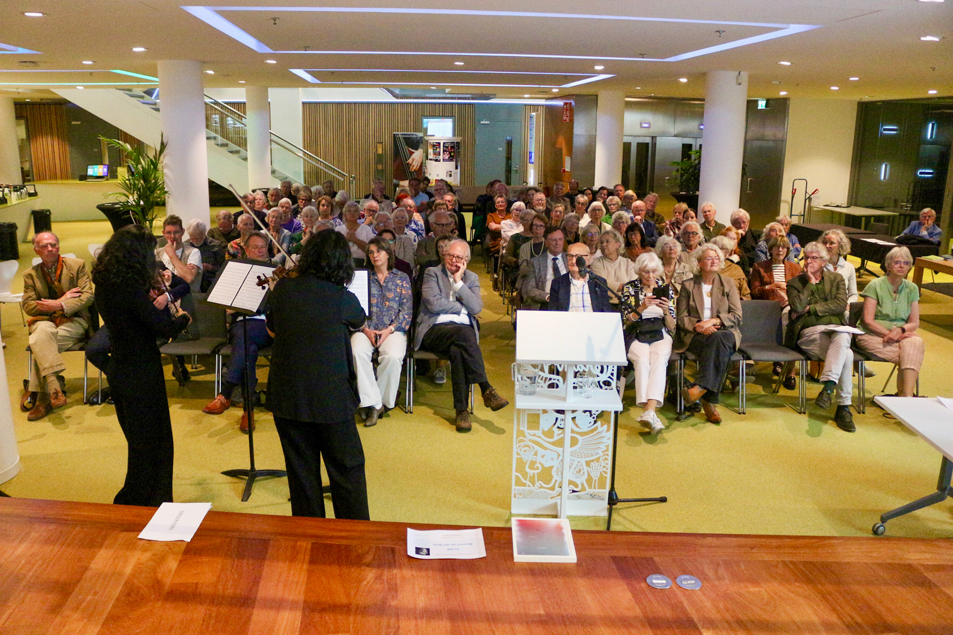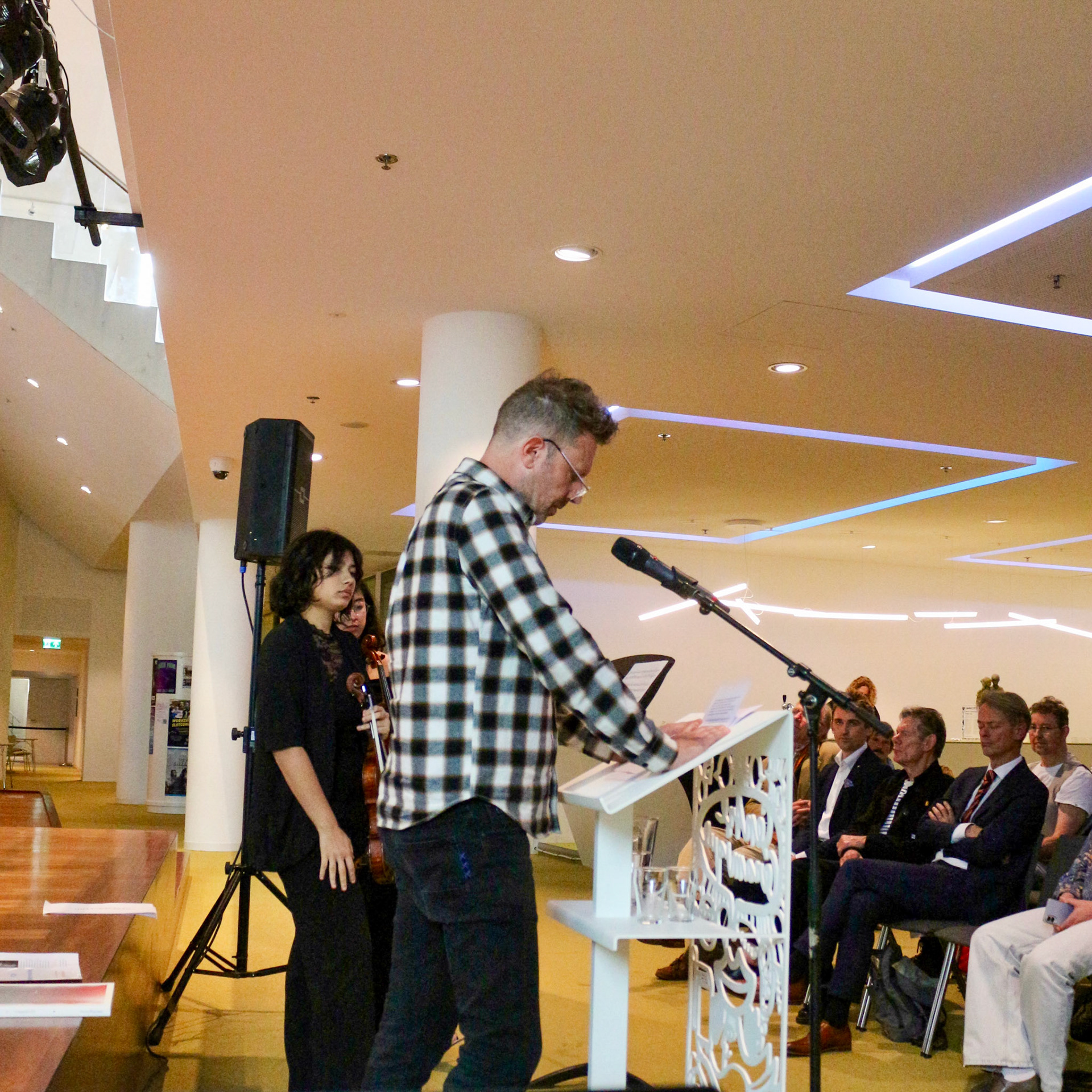 Hieronder een foto-overzicht van het evenement rond de uitreiking van de LHPP 2025 aan Maarten van den Berg. Uiteraard hebben we ook foto's in het overzicht opgenomen van de presentatie van het boek van Peter Pluymen. De muziek werd verzorgd door Tamami Torselini (viool) en Samia Mousavi (alt-viool).